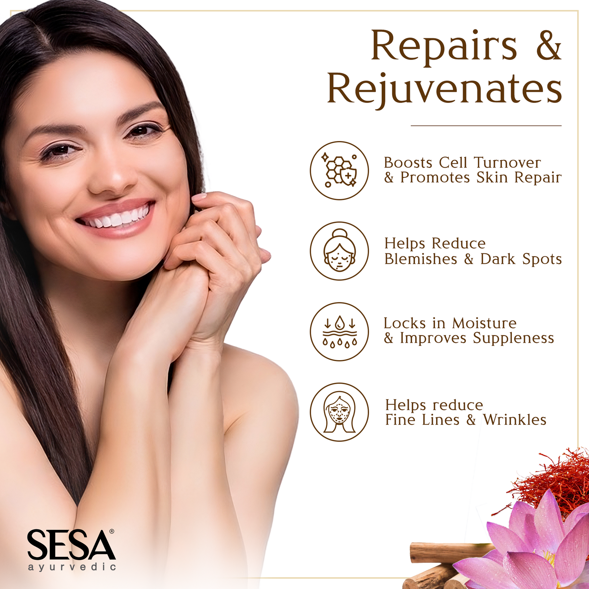 SESA 8% Kumkumadi Padma Skin Brightening Night Cream I 50g I Reduces fine lines & wrinkles I Promotes Skin Rejuvenation & Skin Repair I Anti -Ageing I Even Skin Tone I Ayurvedic Night Treatment I Light weight Cream
