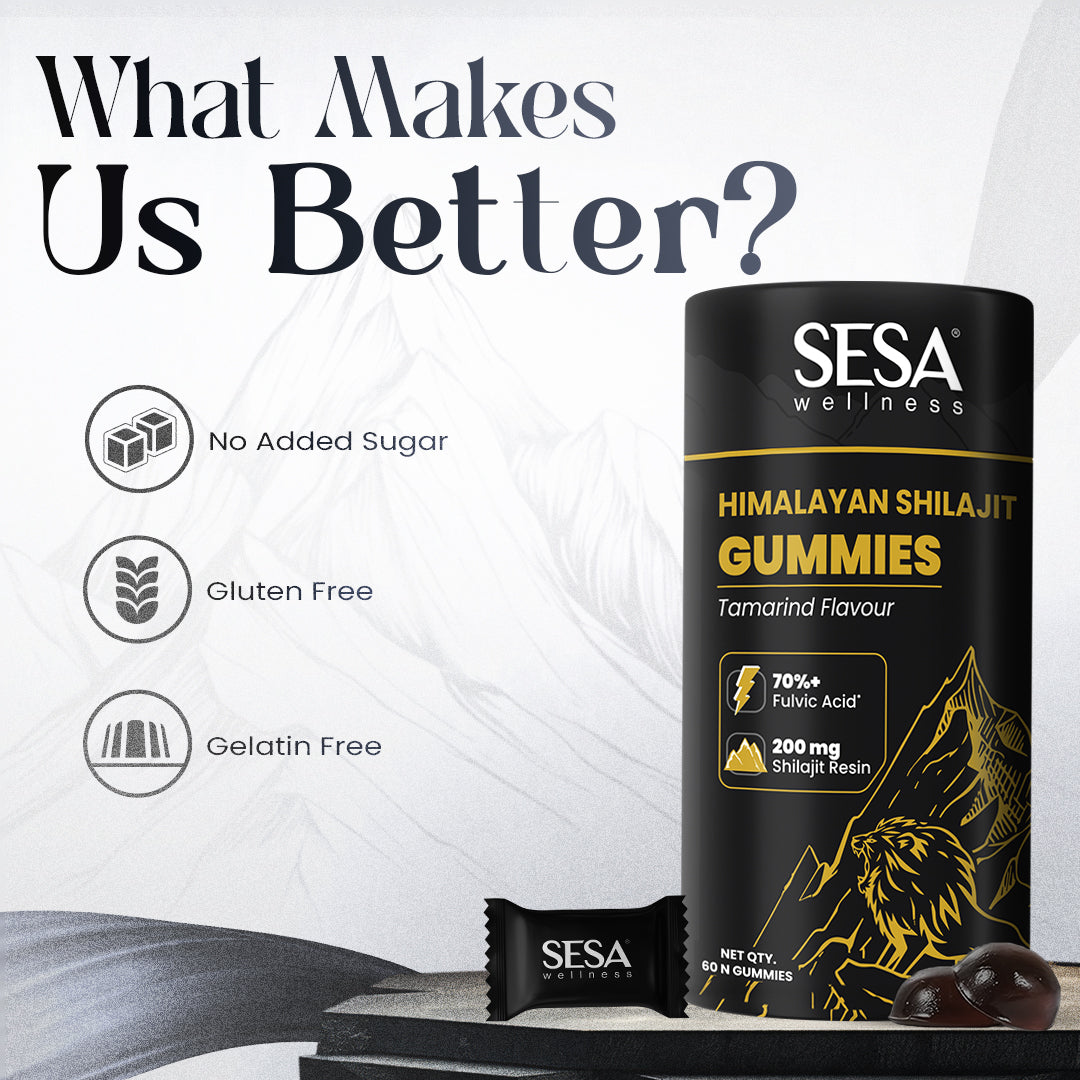 Sesa Himalayan Shilajit Gummies make ancient wellness effortless.