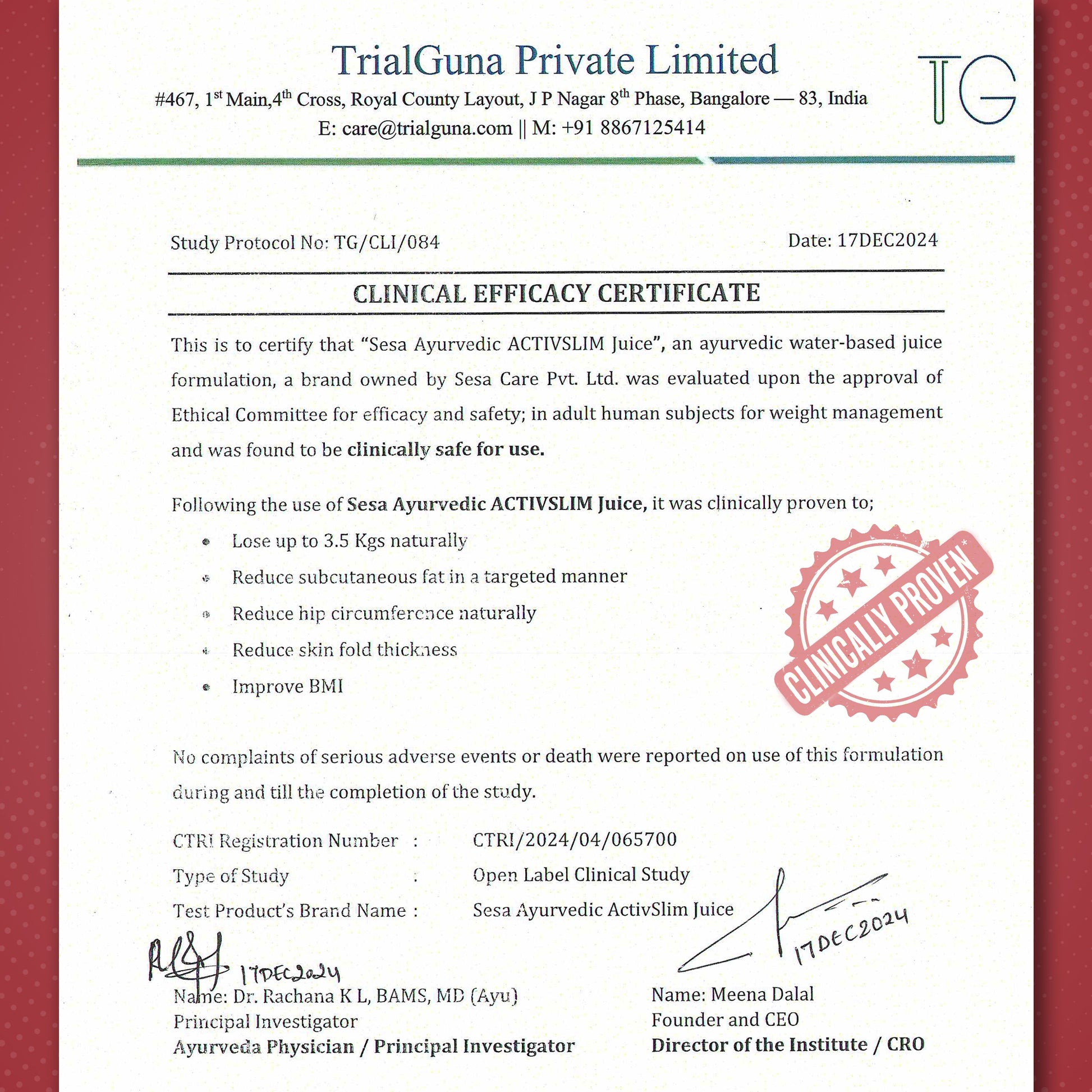 Thanks to Sesa Aryuvedic Active Slim Juice